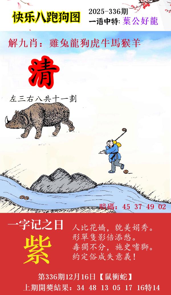 | 336期九肖 | 鸡马牛虎羊兔狗猪鼠 | 开:?00中 |